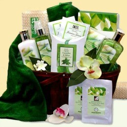 This gift is adorned with beautiful flowers, wrapped in cellophane and topped with a handmade bow. Completed gift measures 13" long, by 9" wide and 15" tall and weighs 6 pounds